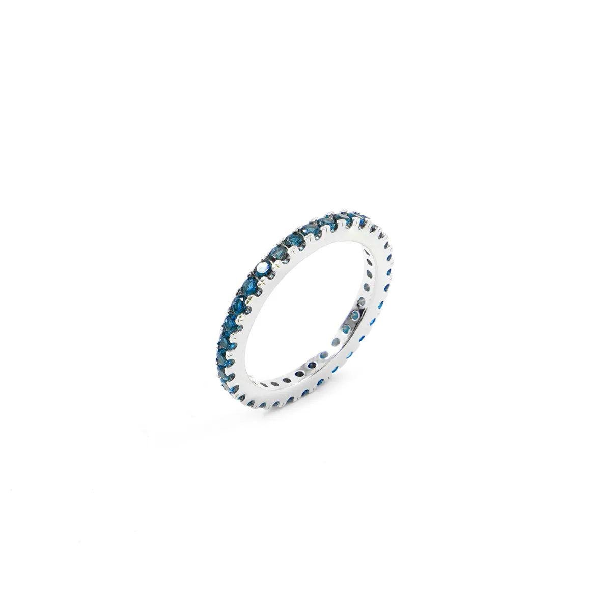 Anello in argento 925 con zirconi blu taglio brillante incastonati su tutta la circonferenza.