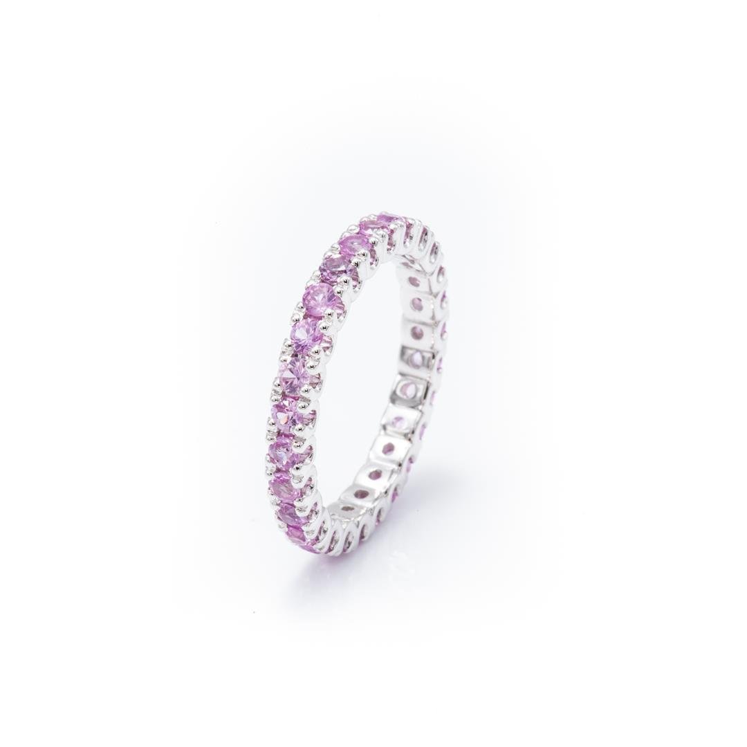 Anello in argento 925 con zirconi rosa taglio brillante incastonati su tutta la circonferenza