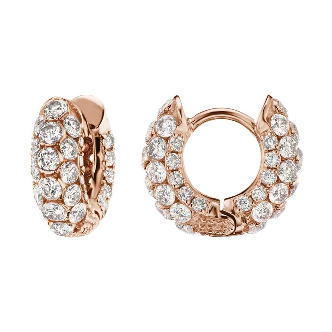 Orecchini a cerchio in argento 925 placcato oro rosa con pavé di zirconi bianchi taglio brillante su tutta la superficie