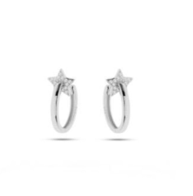 Orecchini a cerchio in argento 925 con pendente a stella pavé montato su castone microincassato.