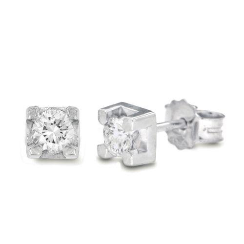 Orecchini punto luce in argento 925 rodiato con zirconi bianchi taglio brillante incastonati in una montatura quadrata a quattro griffe. Chiusura a perno con farfallina