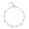 Questo bracciale in argento 925 presenta una catena fine impreziosita da pendenti a forma di cuore decorati con zirconi bianchi